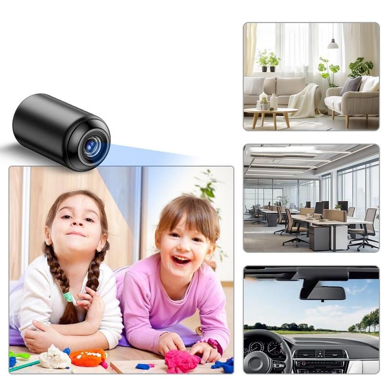 Compact en veelzijdig: Het mini Wi-Fi-cameraontwerp past naadloos in elke kamer. Ideaal voor huisbeveiliging, kantoorbewaking, opname in de auto of het synchroniseren van audio en video tijdens vergaderingen.