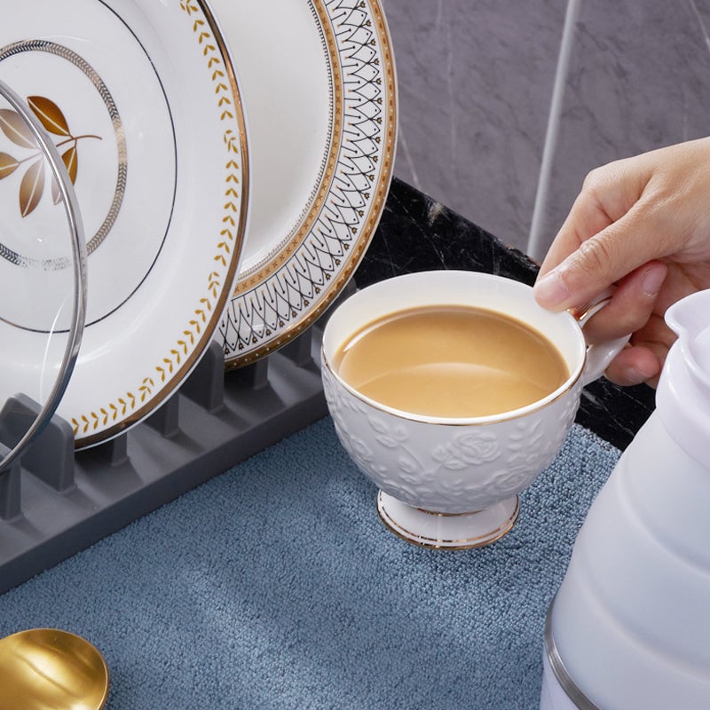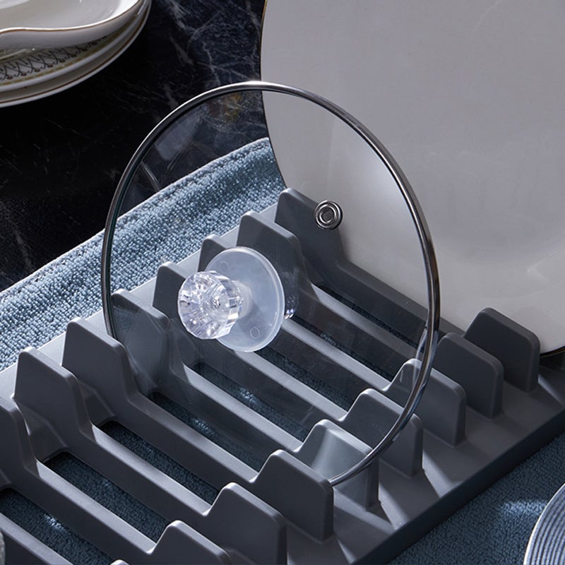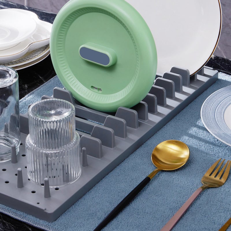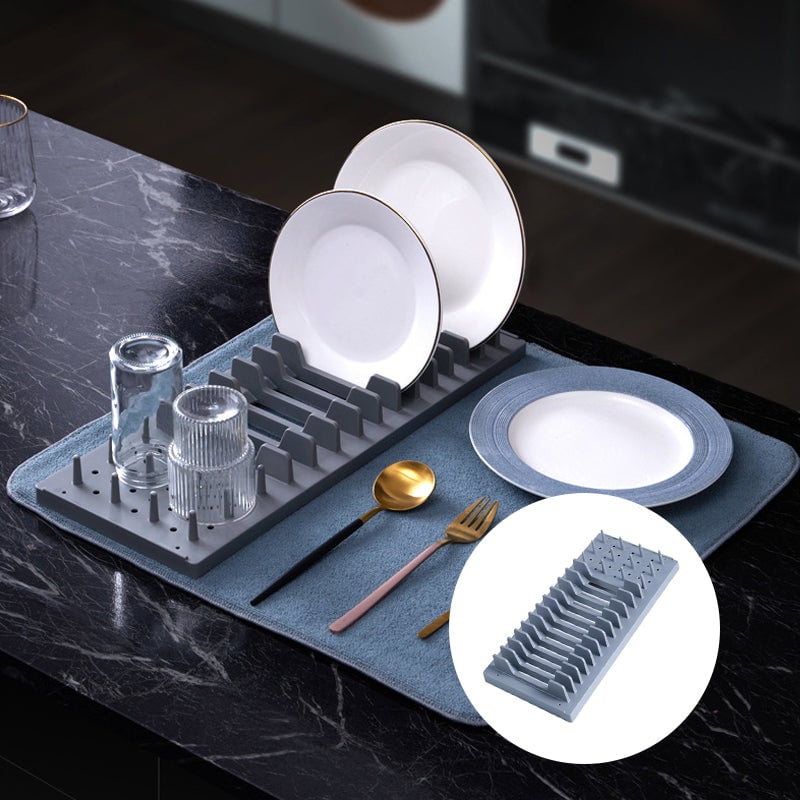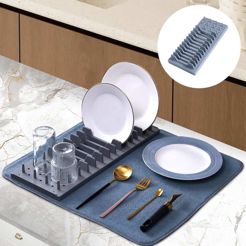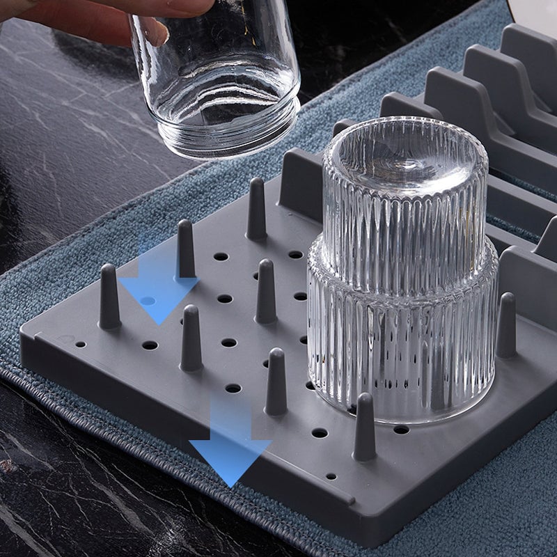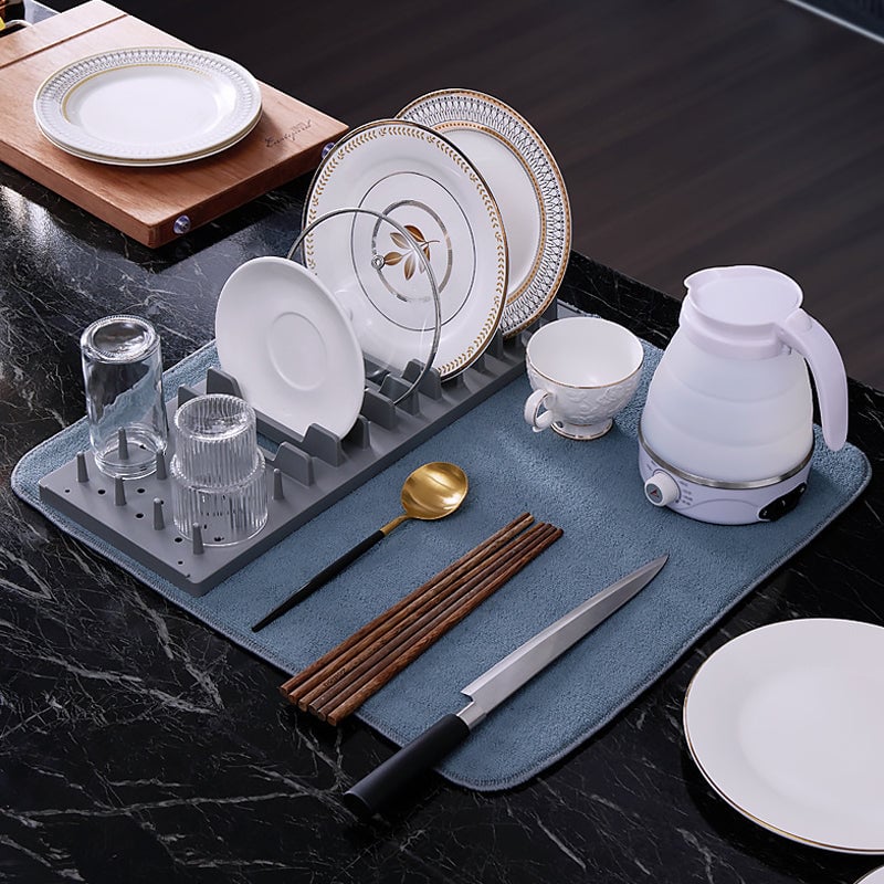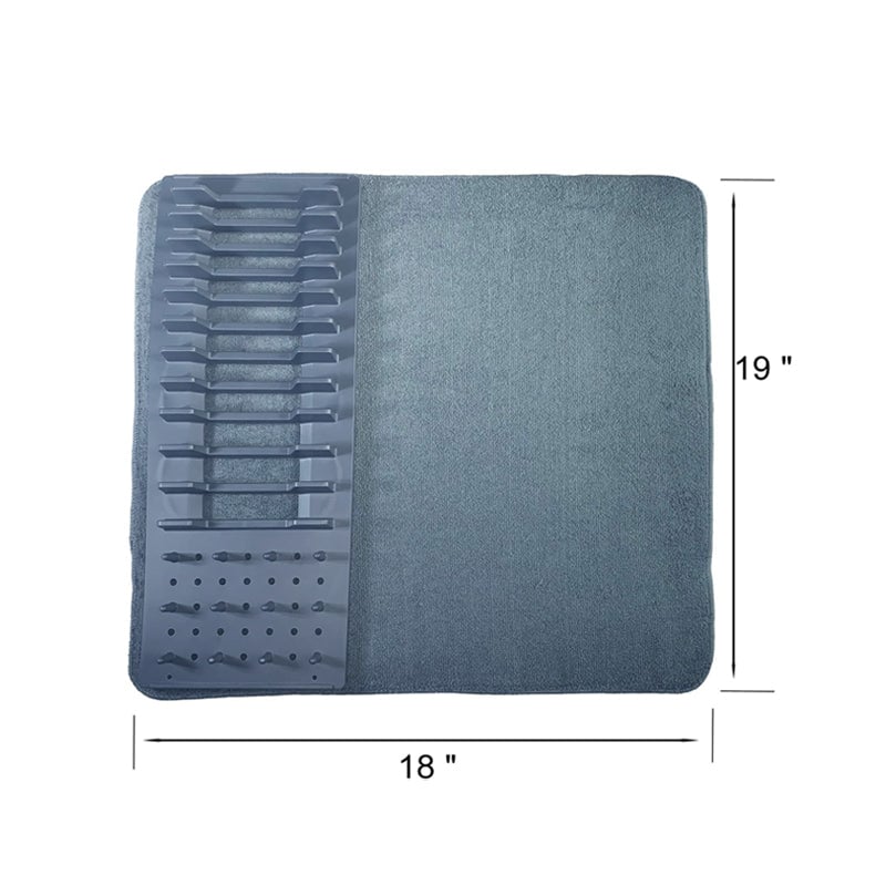 De duurzame polyestermat zorgt ervoor dat de vaat tijdens het drogen op zijn plaats blijft, voorkomt uitglijden en beschermt kwetsbare voorwerpen tegen beschadiging.