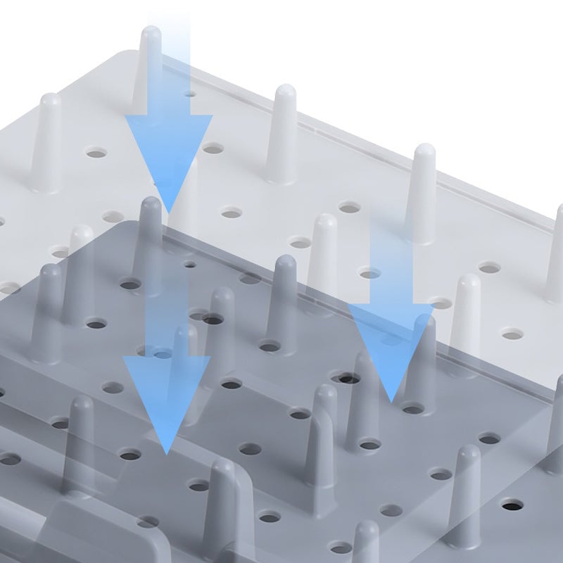 Wanneer de Stack-Fish niet wordt gebruikt, kan hij netjes worden opgevouwen en moeiteloos in een lade of kast worden opgeborgen. Het strakke ontwerp past bij elk keukendecor en biedt voldoende ruimte voor het drogen van serviesgoed.