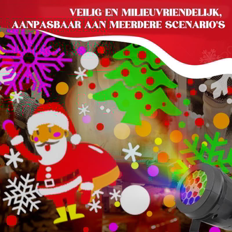 Dynamische feestdagen projectie: Beschikt over 16 verwisselbare kerstthema patronen zoals sneeuwvlokken, de kerstman, kerstbomen en meer, voor levendige verlichtingseffecten in huis of ter decoratie in de auto.