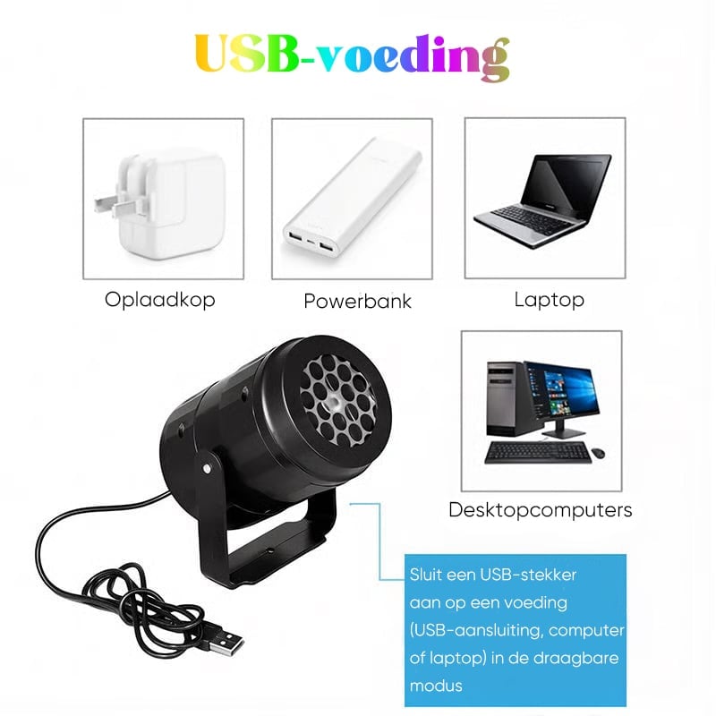 USB-voeding compatibiliteit: Werkt met 5V/1A USB-poorten, zoals powerbanks, autoladers, laptops of adapters, voor flexibel en comfortabel gebruik overal.