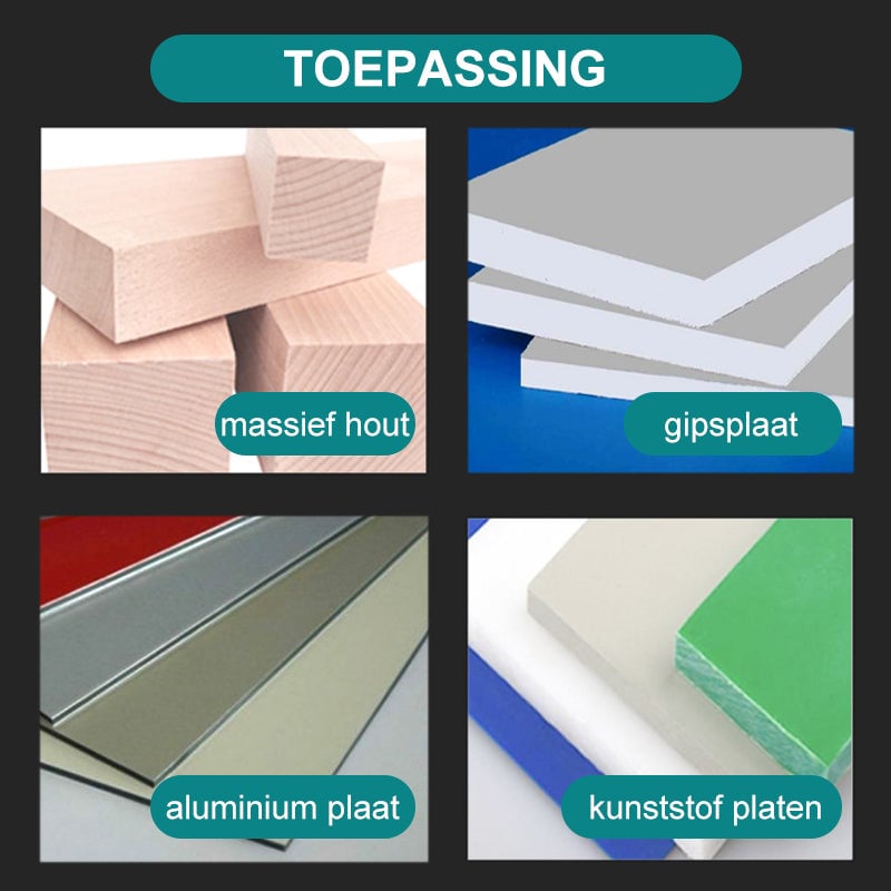 Multifunctioneel: veel gebruikt voor houtbewerkingsopeningen, spotopeningen, kunststof plaatopeningen, luidsprekeropeningen enz., maar niet voor glas en metaal.